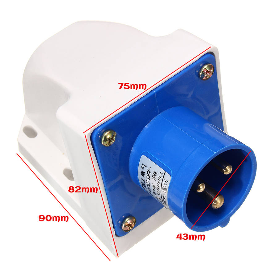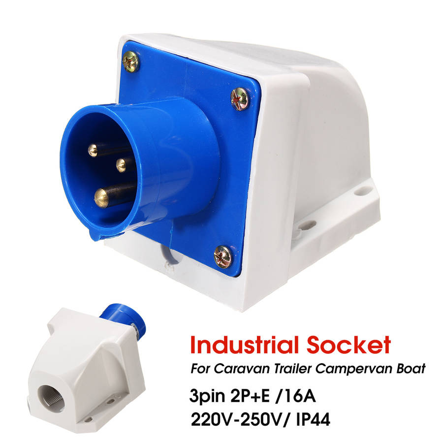 3pin 2P+E 16A Industrial Socket 220V-250V IP44 Caravan Trailer Campervan BoatSpecification: Product Name: 3 Pin Industrial site Plug sockets Color: White & Blue Material: Plastic Standard: 3 Pin Vehicle Type: Campervan & Caravan IP Rating: IP44 PINS: 240V 16A 3 PIN (2P+EARTH) AMP: 16A Voltage: 220V-250V Certification: CE,CCC Distance for hole center: 60mm (from screw hole to screw hole) Manufacturer Part Number: PO112 Application:Industrial Features: 1P44 rated, splash/weather proof Heavy duty impact-resistar, for site and industrial use RATED 16A-6h/200-250v 2p+ IP44 Art4601560 CE Mark Fitments (Please Compare The Socket With Your Original One Before Purchasing!): For Caravan, Motorhome, Horse Box, Catering Trailer, Campervan etc. Package Included: 1 x 3 pin Plug Socket