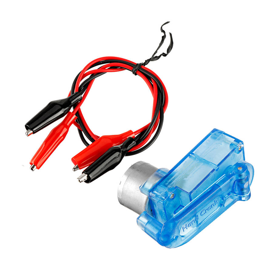 Description: Understand the gear`s speed-increasing transmission conversion and the principle of electric energy generation, and cultivate the manual and brain skills, which is very suitable for manual classes in schools or for adults and children to play together! When shaking slowly for one second or more, the generating voltage can easily reach 3V, and it is easy to light a few LED lights (not included):-namely diode lights, shaking at a constant speed-shaking too fast, the generating voltage will be high. Hand-cranked generator, when it rotates quickly, the generating voltage can reach 6V. Package included: 3 x Hand-cranked Generator 6 x clip line Note: The product is not included the LED Lights
