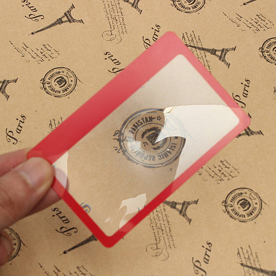 This product is ultra-thin portable magnifying glass. When you reading newspapers not very clearly, then you can use it. It's very suitable for middle-aged or old people whose eyes can't cee clearly. It has moderately multiples (magnification) , easy to carry, can put in the purse, wallet, do not take a place. It is very practical necessities in home repair, traveling, collecting stamps and presbyopia reading.