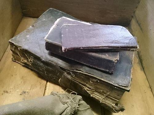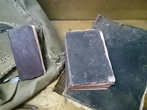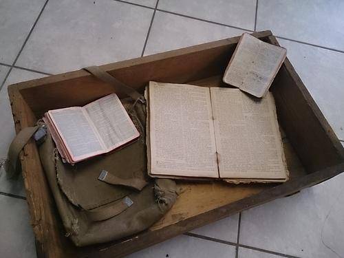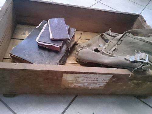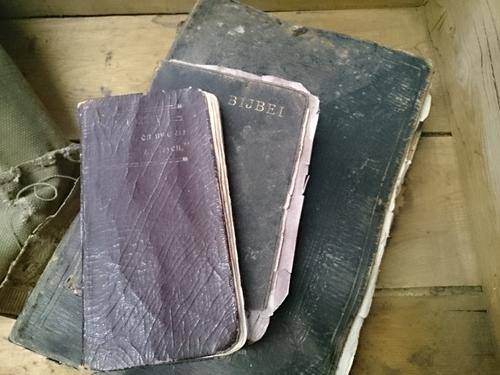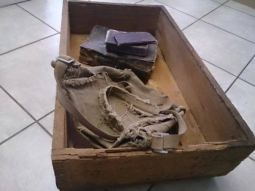 3x Old Dutch Bibles, 1x Vintage Shoulder Bag, 1x Vintage Ammunition Case! Combined these items makes a beautiful old Africana display piece!