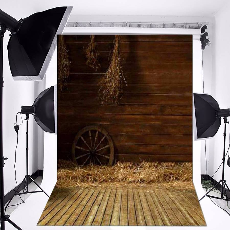 3x5FT Vinyl Photography Backgrounds Wooden Wall Wheel Straw Backdrops Photo Prop