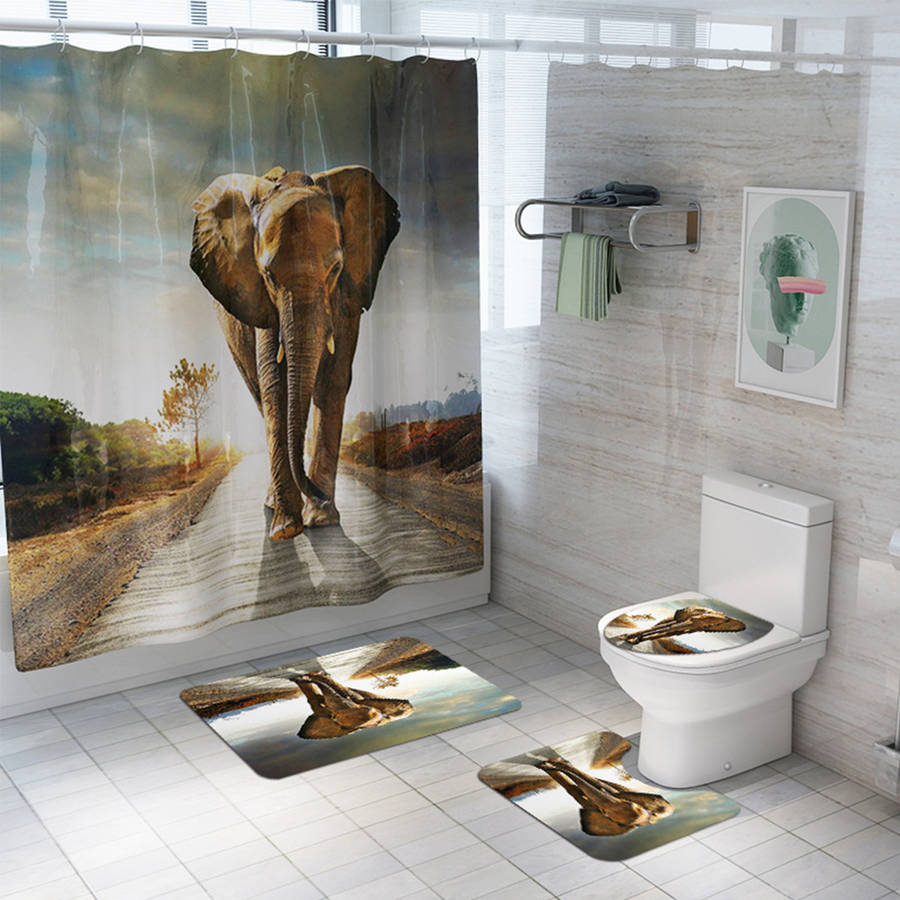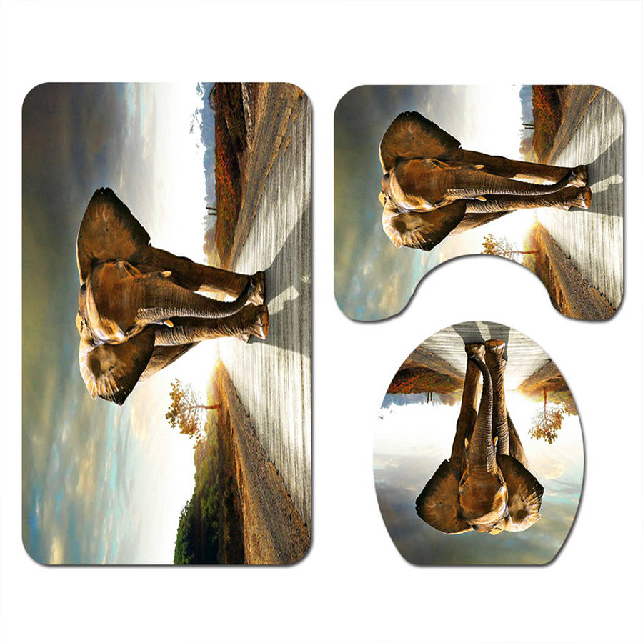 4/3/1PCS Elephant Bathroom Toilet Floor Mat Waterproof Shower Curtain Non-slip Flannel... (SIZE: #1)