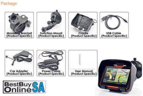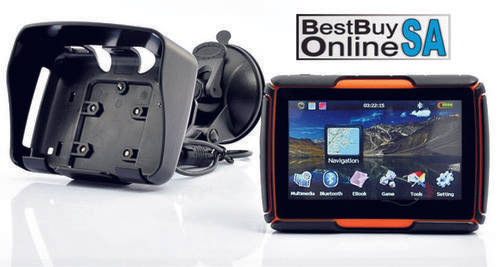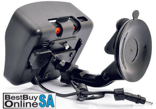 All Terrain 4.3 Inch Motorcycle GPS Navigation System with a Waterproof rating of IP57, 4GB Internal Memory and Bluetooth connectivity will help you enjoy the ride of your life. All Terrain means no pain, no gain as this GPS is made to embrace most elements that it may encounter, this is the "Rage" motorcycle GPS navigation system. This Motorcycle GPS navigation system (that can be used with cars as well) consists of a 4.3 inch touch screen which provides a user friendly interface as well as two power cables to be connected either to a car cigarette lighter port or a motorcycle battery. Also in the "Rage" package is a suction mount to place this GPS on your windscreen or a mounting bracket to connect to the handles of your motorcycle for better viewing when hitting the highway. This "Rage" GPS has a waterproof rating of IPX7 meaning that it can be immersed for up to 30 minutes at a depth of up to 1 meter. Which means it should handle any rain or snow, and should survive falling into a creek or shallow river making it ideal in them all terrain conditions if out on your motorcycle and you are exposed to the elements of Mother Nature. You can store data directly onto this motorcycle navigation unit as it has 4GB of internal memory as well as the ability to have an additional storage of up to 16GB via the built-in micro SD card port. This well rounded GPS navigator also has Bluetooth connectivity that allows hands-free also with echo-cancellation therefore making it safer to use as you can concentrate on the road ahead.