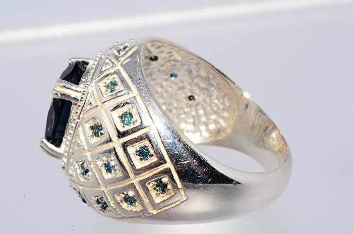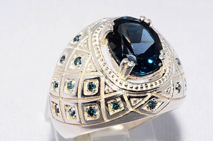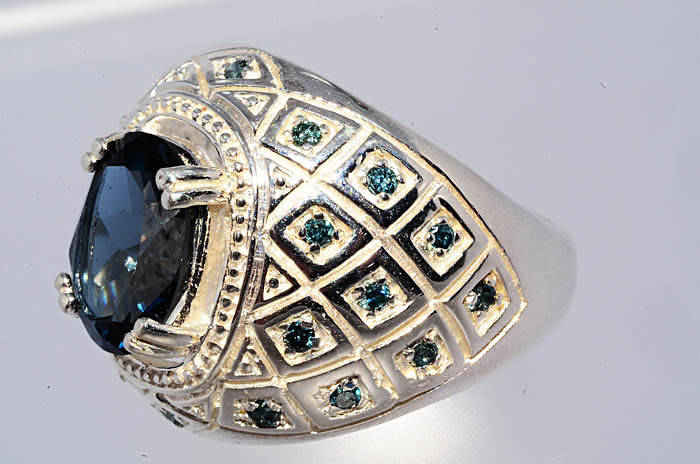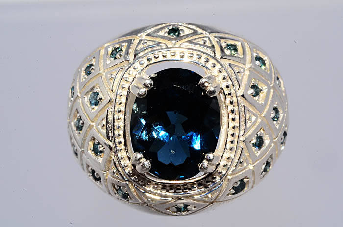 4.45CT NATURAL BLUE TOPAZ & BLUE DIAMOND RING BEAUTIFUL