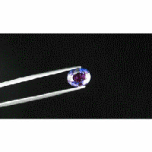 These blue purple sapphires are fascinating gems. If you look at them perpendicular to the face, they are a violet blue in the middle, and a pink purple at either end of the major axis. The colours shift as you move the gem around! This effect is called pleochroism, and is due to sapphire having two distinct refractive indexes in the orthogonal crystal axes. The colours are due to traces of iron and titanium (which you normally find in blue sapphires) as well as chromium and vanadium.