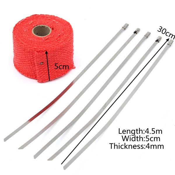 4.5m Exhaust Pipe Heat Insulation Wrap Turbo Header Shields Red with metal strips
