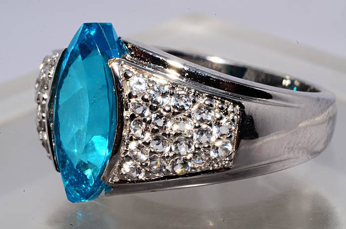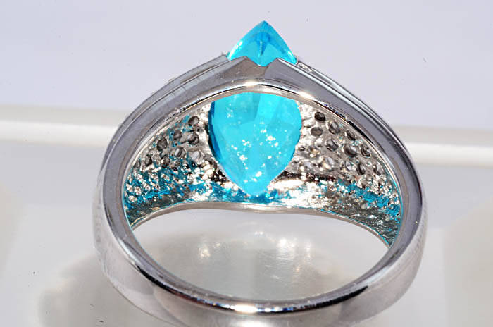 4.60CT MARQUISE CUT CREATED PARIABA TOURMALINE & WHITE TOPAZ RING