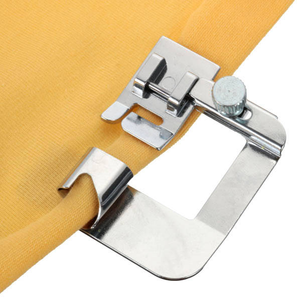 Adjustable Binding Presser Foot Household Sewing Machine Accessories This presser foot is quick and easy hemming and binding. It can bes sewed trouser legs, clothes, purse, doll, bag or etc. Specification: Material: stainless steel Size: 4/8"=13mm Color: silver Package Include: 1 x Adjustable Presser Foot