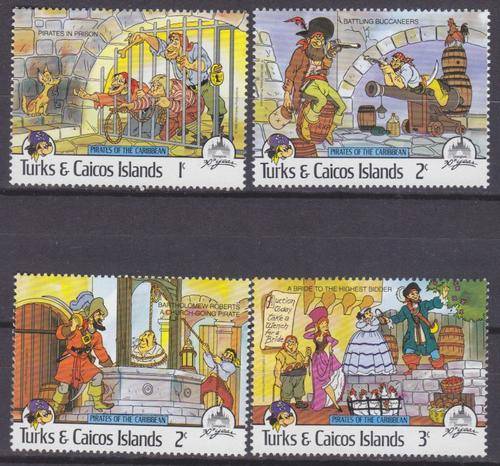 4 DISNEY STAMPS - PIRATES OF THE CARIBBEAN - TURKS & CAICOS ISLANDS - MNH.. VERY POPULAR, DISNEY COLLECTABLE STAMPS.. HOUSE RULES - In order to help me serve you better.