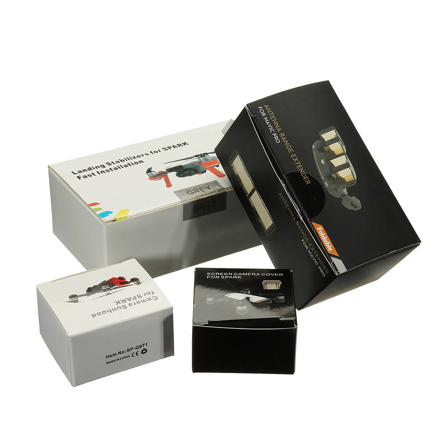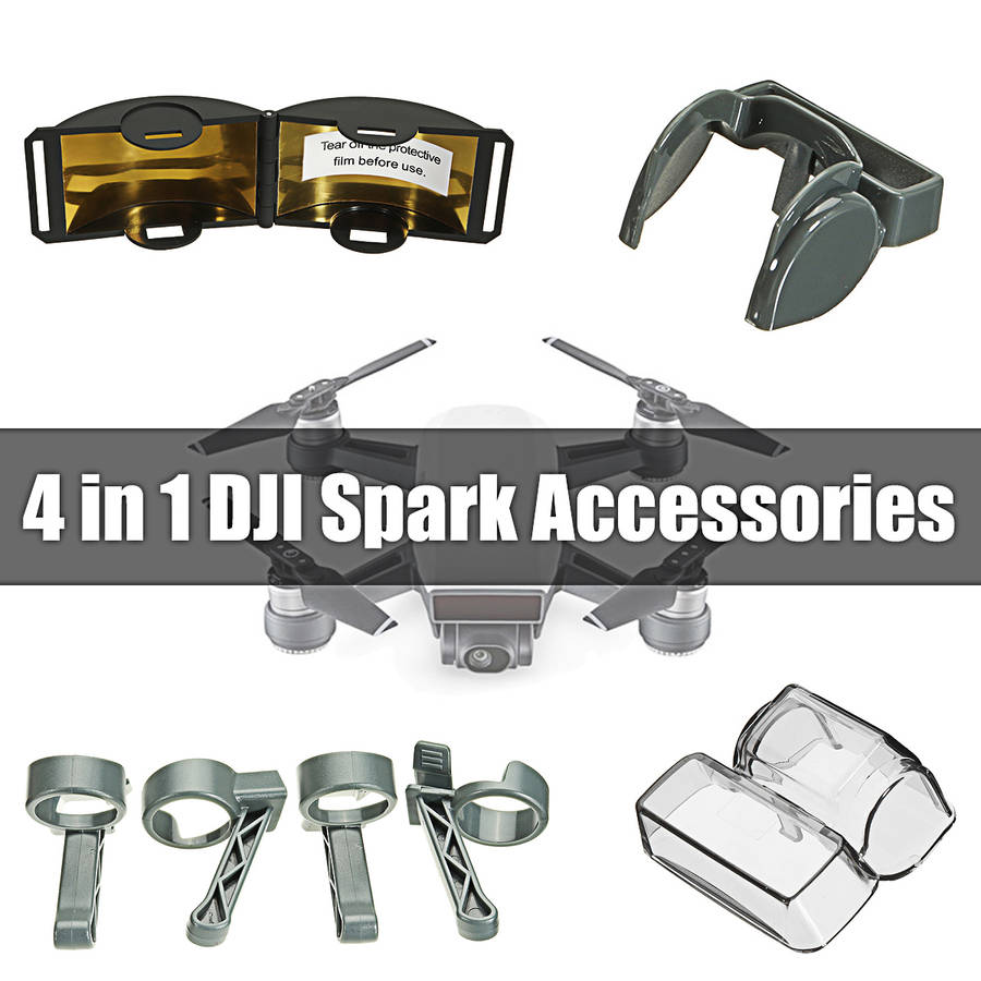 Description: Item Name:?4 in 1 Accessory Kit? Usage for?DJI Spark ? Features: Landing Stabilizers 1. Extended Heightened Landing Legs prevents tipping over during take off or landing and allows for landing on grass and other rough surfaces, protects the bottom of the drone and the gimbal camera. 2. 4 pcs legs in one kit. ? Antenna range extender 1. Foldable, convenient to use. 2. Reflectance reaches up to 95%. ? Camera Sunhood 1. Effectively suppresses screen astigmatism and prevents stray light from entering the lens for better aerial photography. 2. Protect the PTZ camera to prevent collision with foreign objects. ? Screen camera Cover 1. Can protect PTZ, camera, forward 3D sensing system screen at the same time. 2. Anti-dust, anti-scratch, bump-proof. Package Include 1 x Landing Stabilizers 1 x Antenna range extender 1 x Camera Sunhood 1 x Screen camera Cover