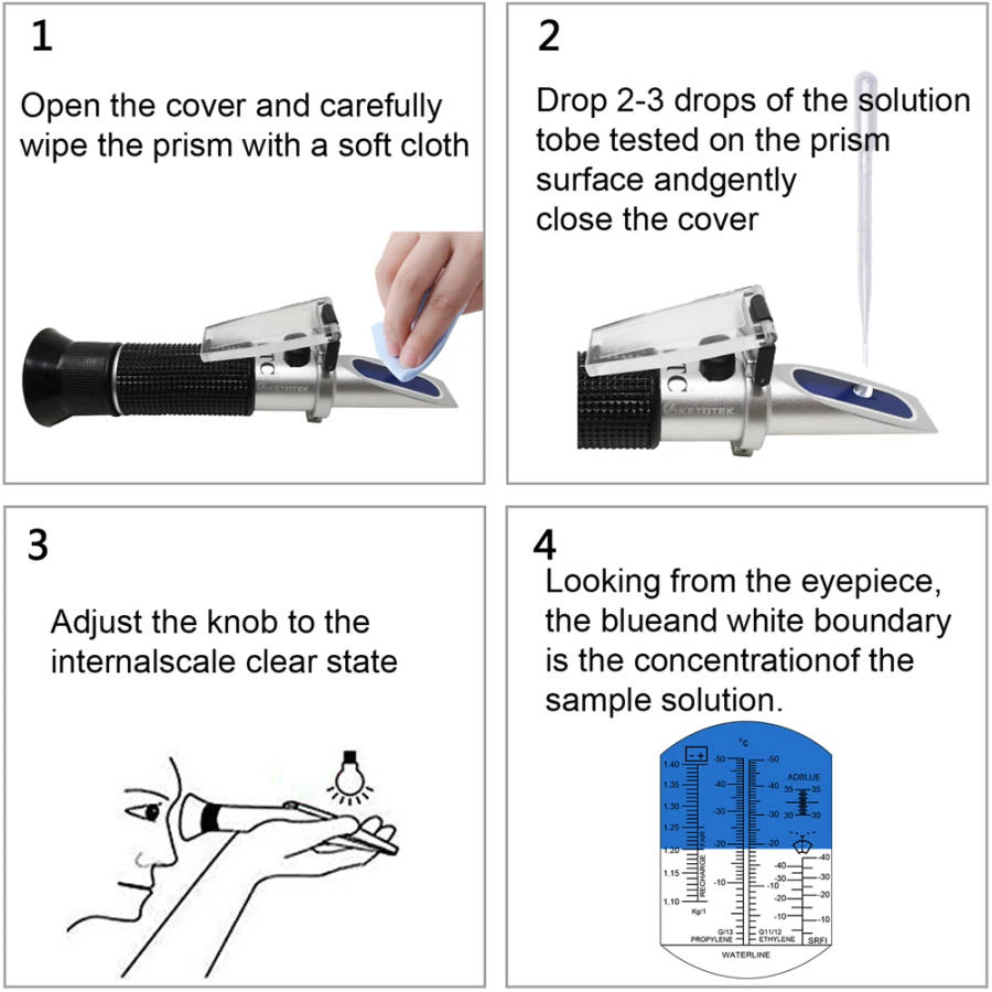 4 in 1 ATC Refractometer Antifreeze Coolant Tester Adblue Engine Fluid Propylene Ethylene Glycol Detector Car Clean Battery Tester