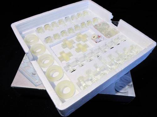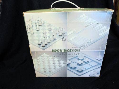 Glass set with no chips or cracks. All the pieces are counted for. 33 cm x 33 cm x 7 cm. Bid now.