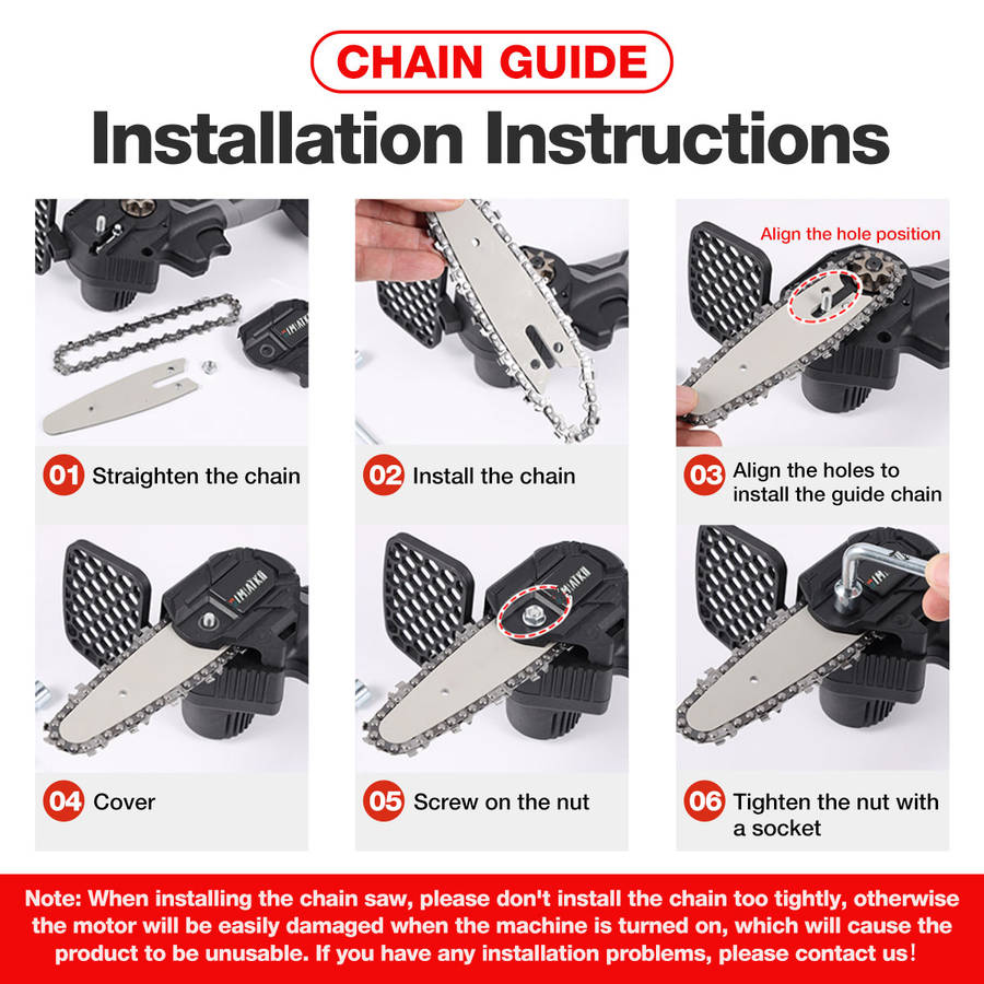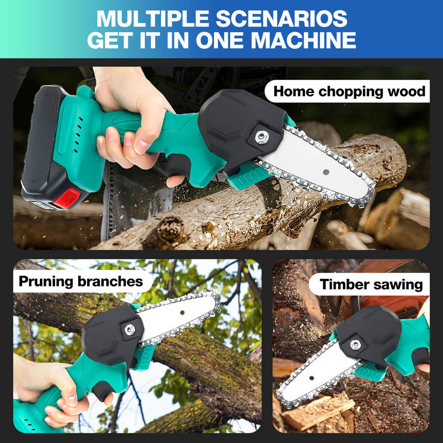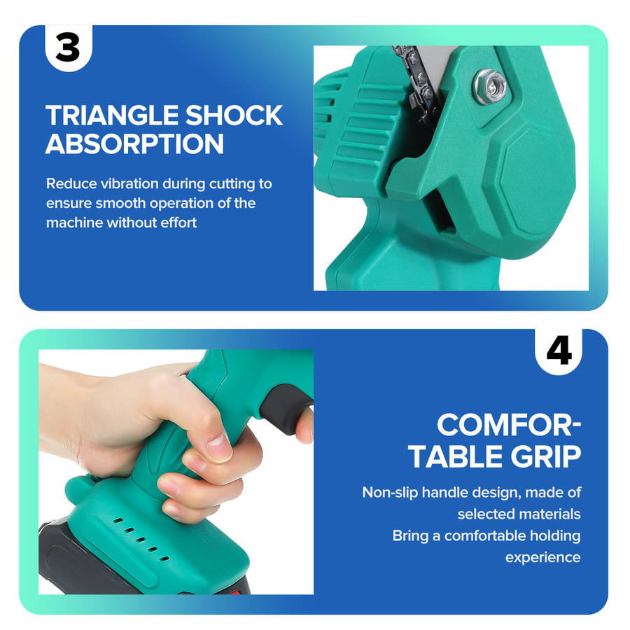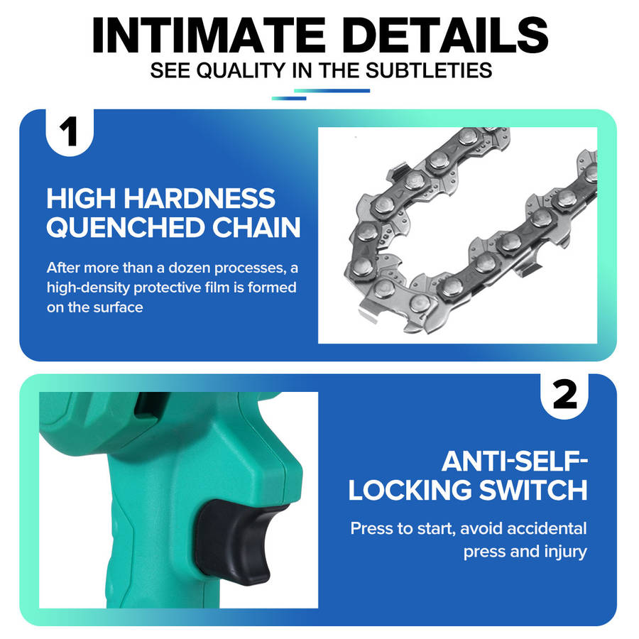 -Rechargeable electric chain saw, light and portable, long battery life, and will not damage the bark.