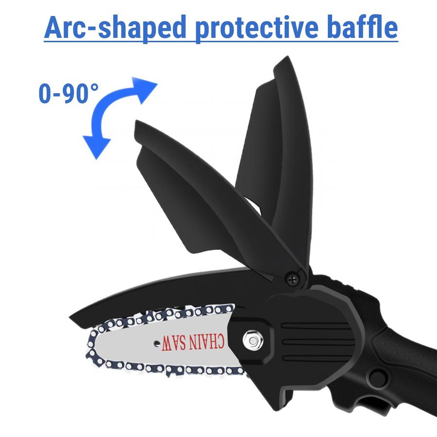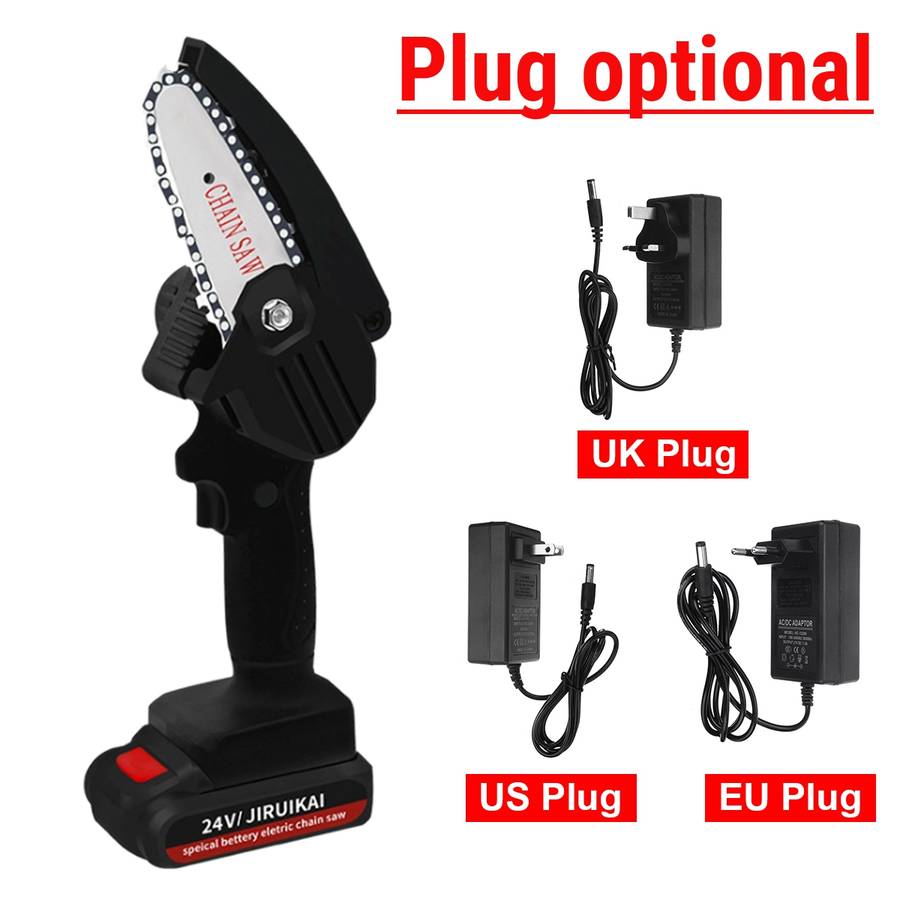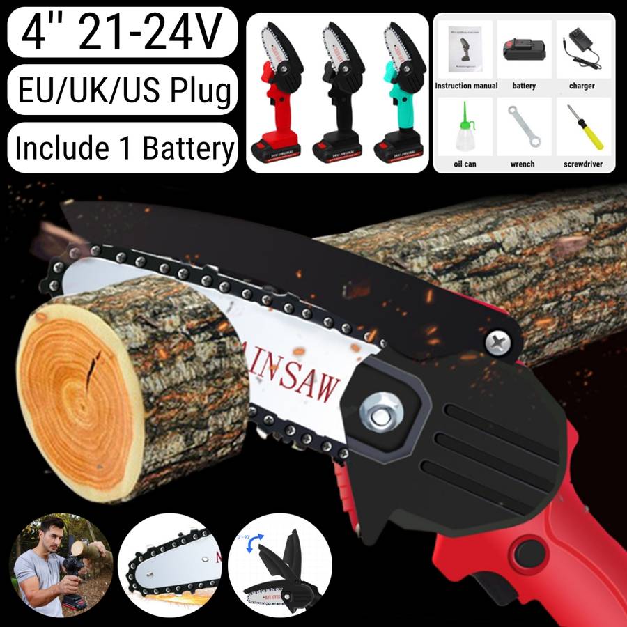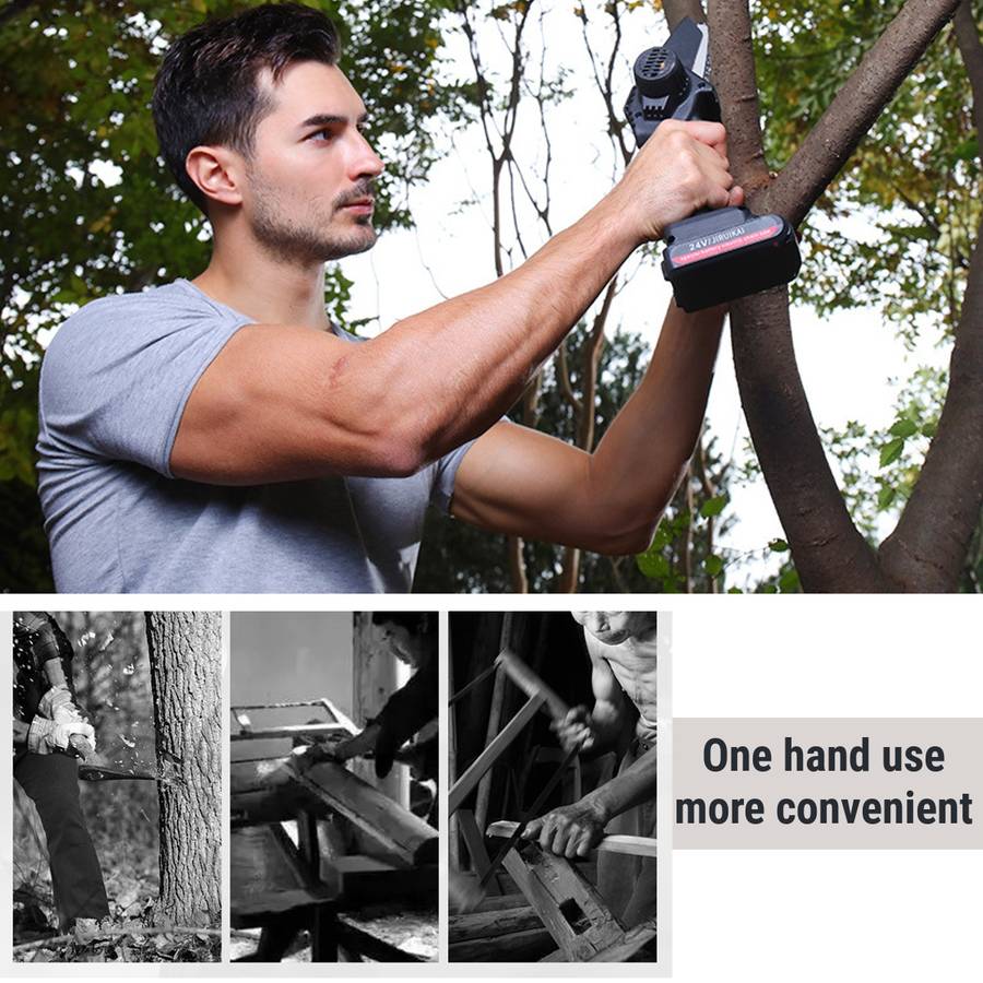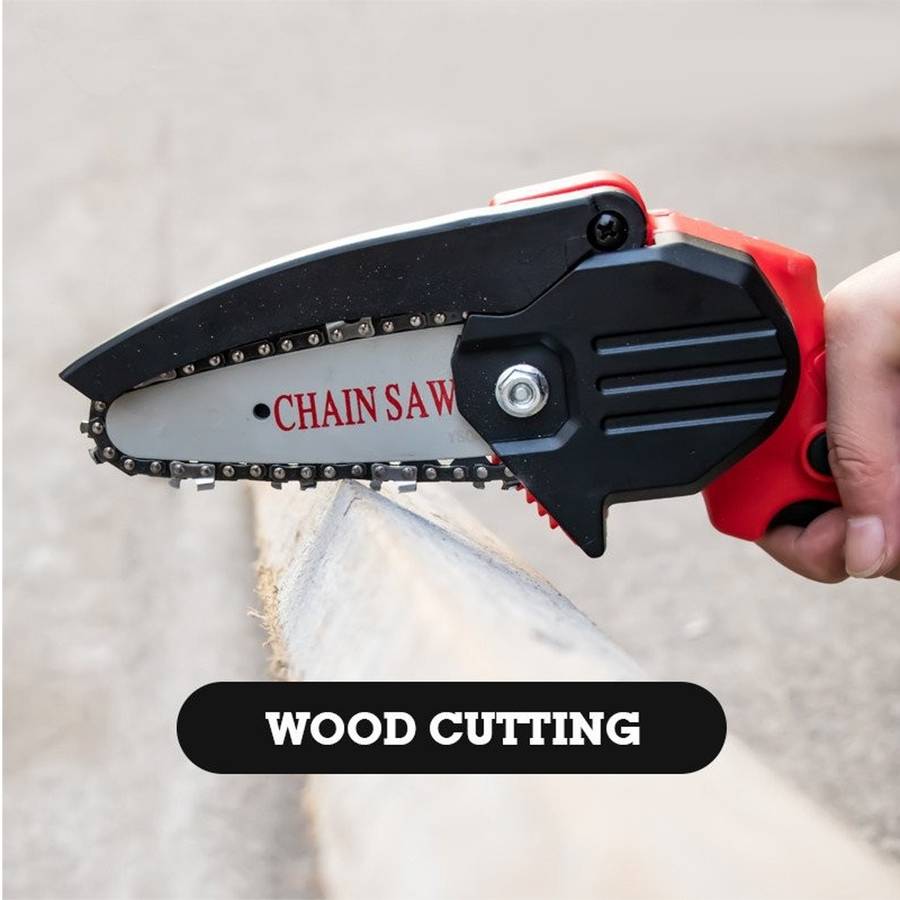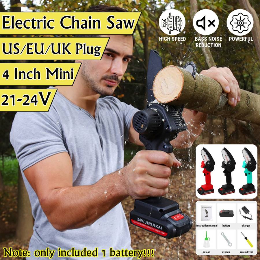 Note: Only included 1 battery????????? Features: -With protective baffle, prevents the sawdust from splashing during the cutting process -Ergonomic handle which is very convenient and safer for carrying. -Safety of sawing, effectively improve the efficiency of your work. -The saw chains has been hardening, temper and anneal.It is durable than normal saw chains. -Small size, can be held with one hand. -Lightweight body, light and convenient, lightweight design, long time holding and not tired hands. -Pure copper motor, strong power, fast cutting, improve efficiency. -Practical, fast speed, low power consumption. -Fine quality switch, fast and slow adjustment, stepless speed change.