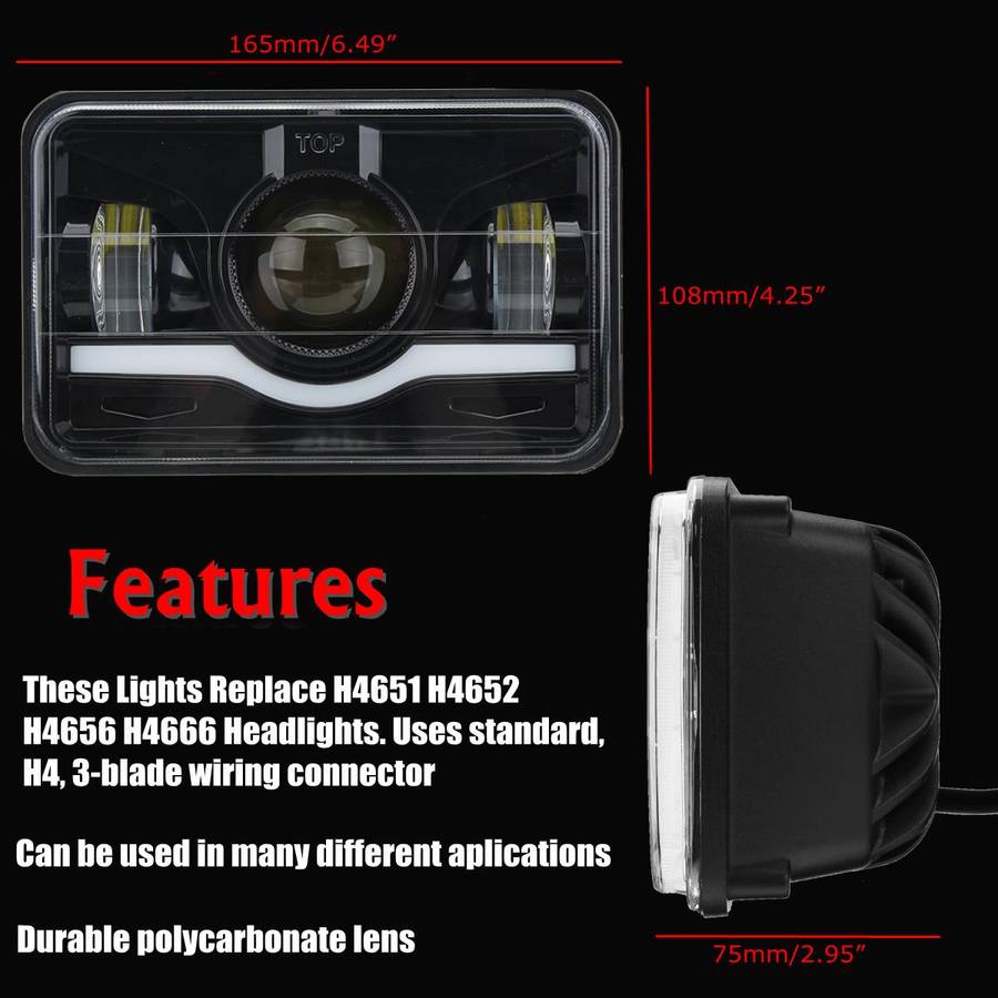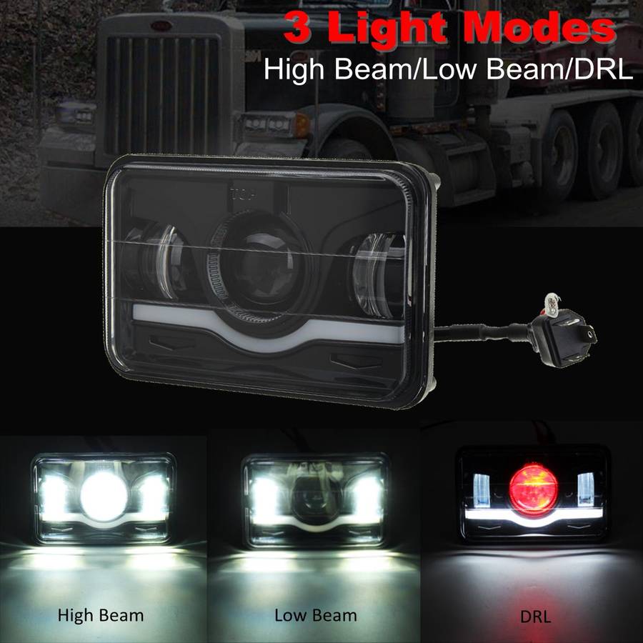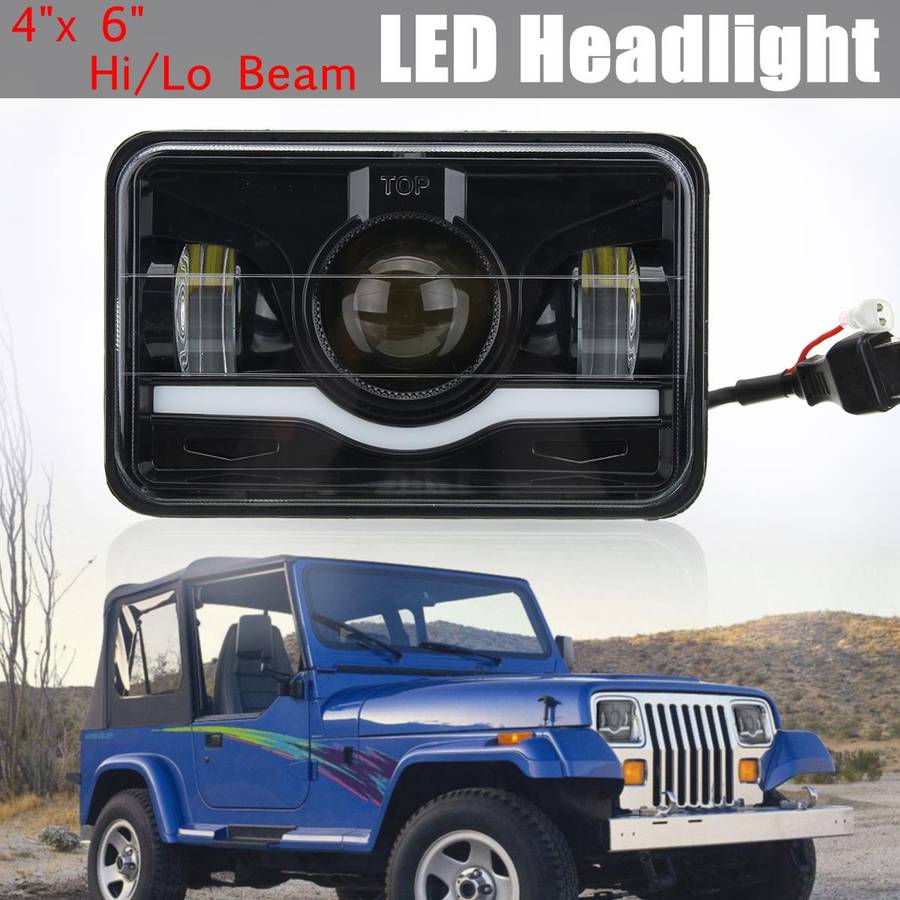 4 X 6 Black Car LED Headlight DRL Hi&Lo Beam Truck Replacement Lamp for Jeep Wrangler