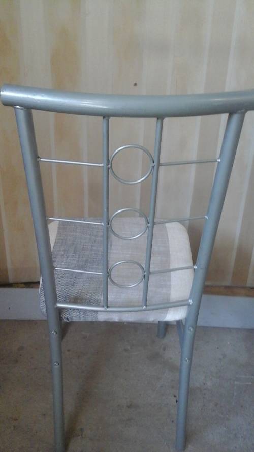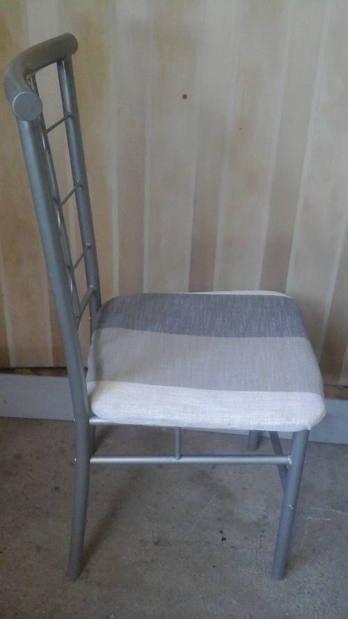 4 LIGHTWEIGHT STEEL AND FABRIC KITCHEN CHAIRS PRACTICAL FOR A SMALL SPACE.