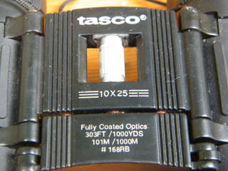 1. Tasco 10x25 in canvas holder: The binoculars appear to be in perfect working condition. I see no damage.