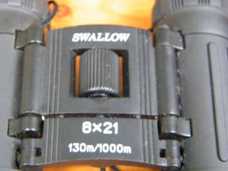 4. Swallow 8x21 in holder: The individual lenses work, but the sight of left eye and right eye do not line up, needs adjustment.