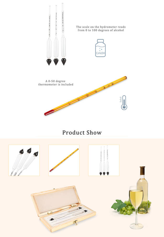Scale : The hydrometer reads from 0 to 100 degrees of alcohol