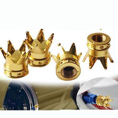 Features: Color: Golden No tools required, easy installation Sold as a set of 4 Valve Caps in one case Aluminum ventcaps Universal, Fits any car, truck, bike, motorcycle, atv with a standard valve stem
