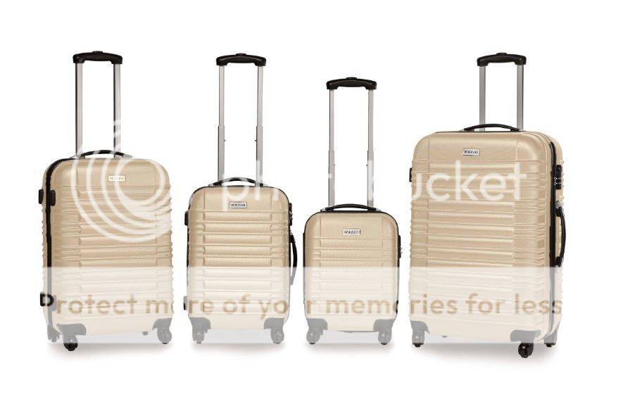 The Travel suitcases have a durable ABS plastic hard-case yet still light weight. The cases have 360 degree spinner wheels, extendable handle, carry handle, combination lock and the inside is fully lined.