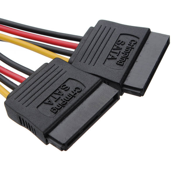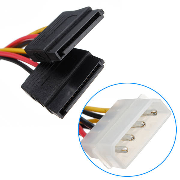 IDE 4 Pin Male to 2 SATA Female 15 Pin Power Cable