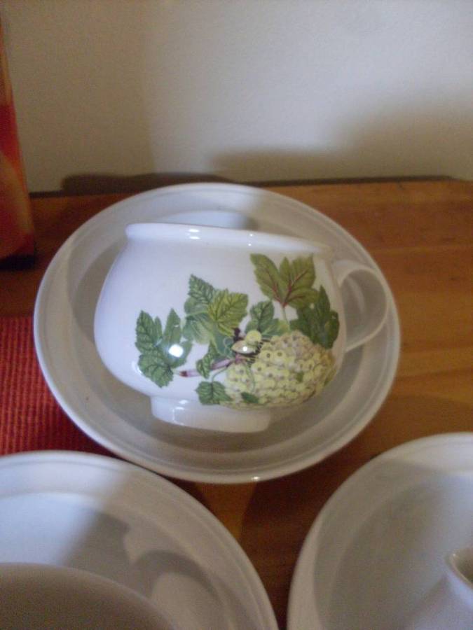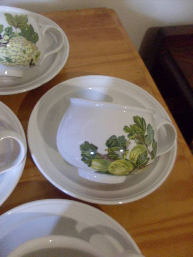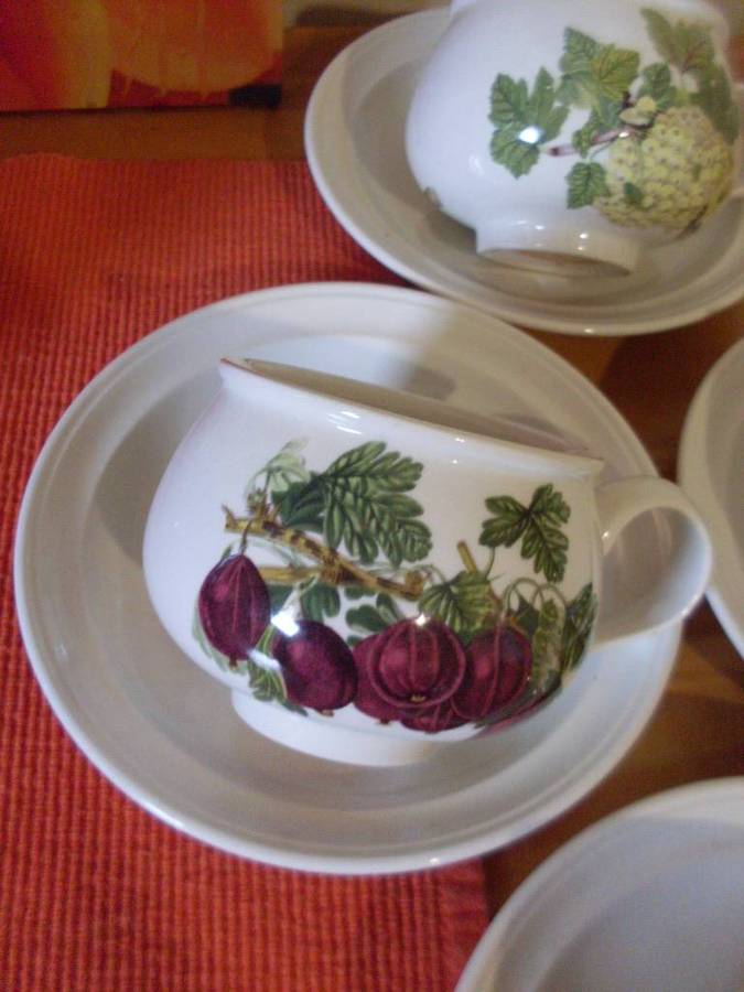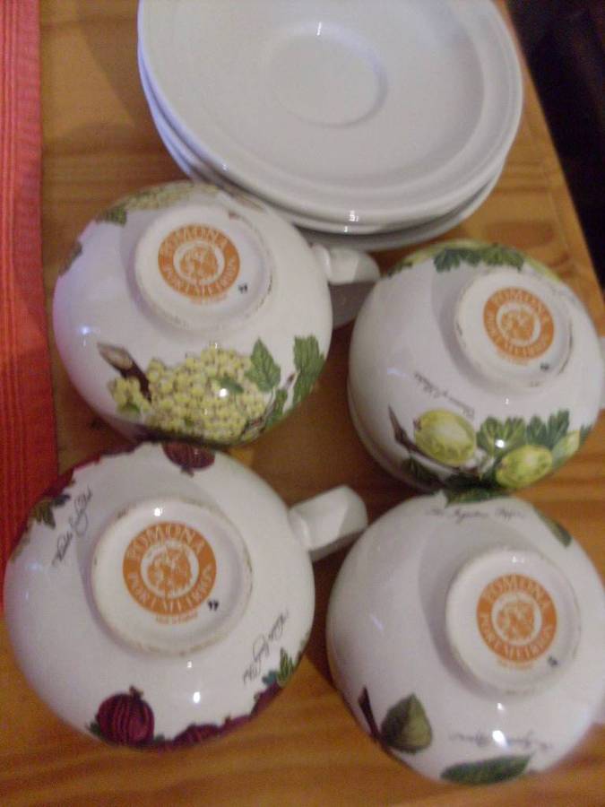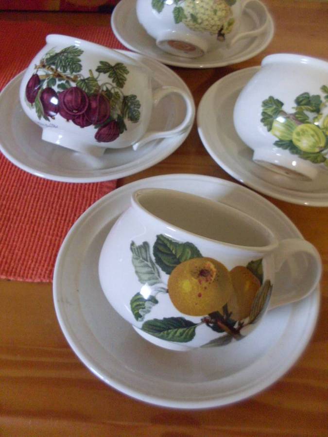 4 PORTMEIRION BUBBLE SHAPED POMONA PATTERN SMALL CUPS + SAUCERS