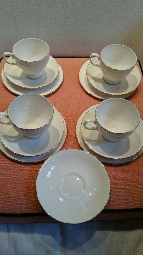 4 Queen Anne White and Gilt Trios and an extra 5th saucer