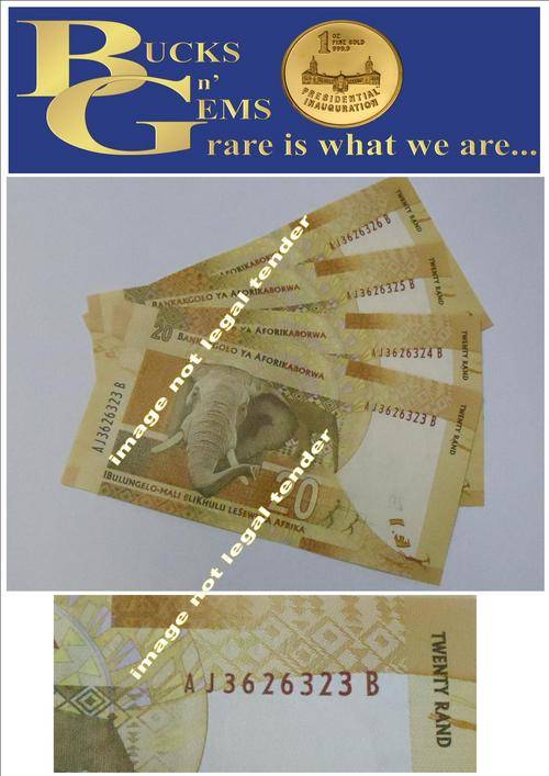 MANDELA NOTE --- R20 - AJ SERIAL NUMBERS