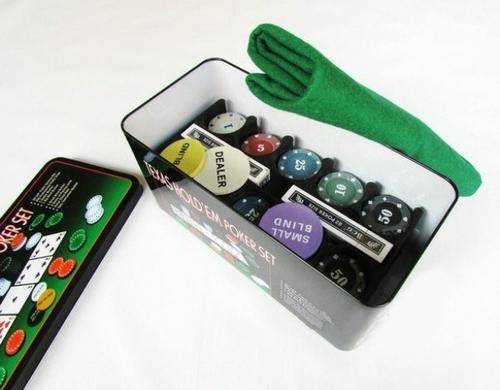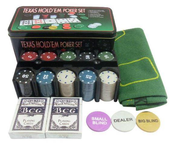 4 Sets to GO!! TEXAS HOLD'EM POKER SET - 200 Chips, 2 Decks of Cards, Chips Rack - STYLISH TIN!