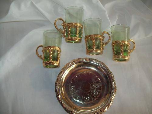 & 5 GILT PLATED COASTERS.
