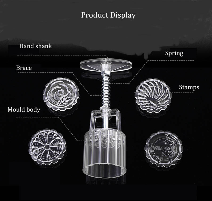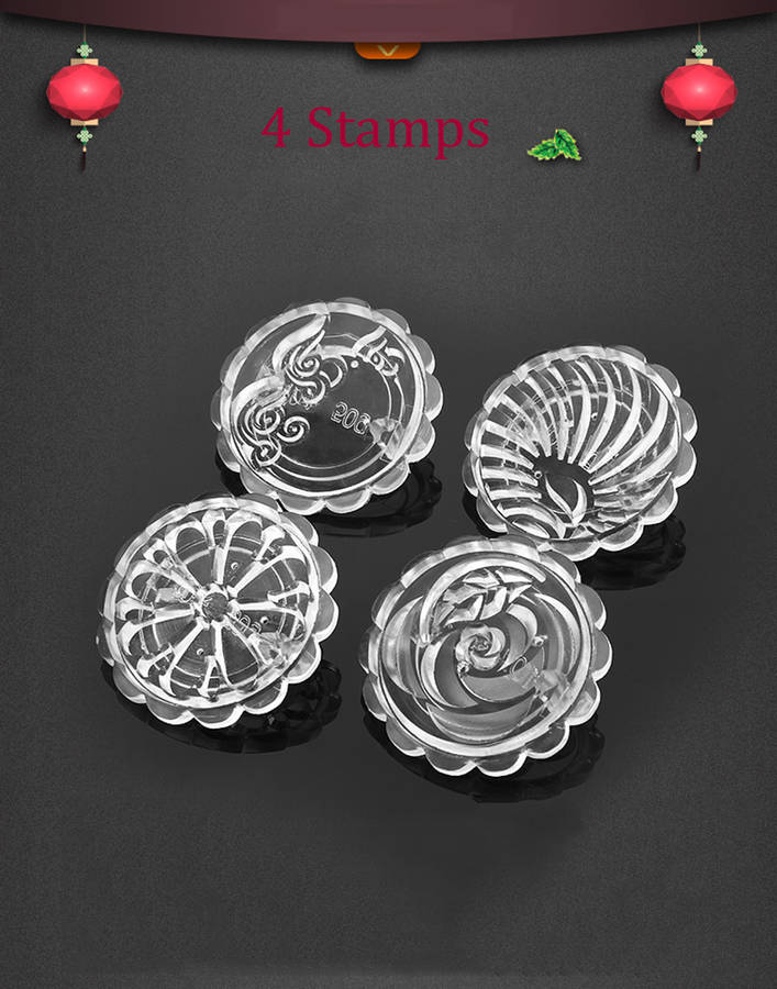 4 Stamps Moon Cake Mould 3D DIY Transparent Round Mooncake Mold Mid-autumn Festival Baking Accessori