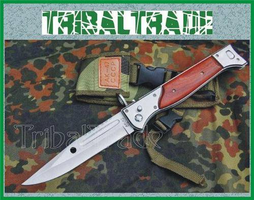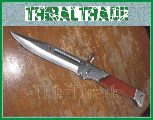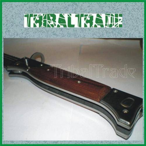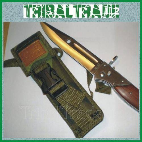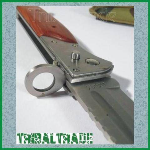 "AK-47" COMBAT BAYONET CCCP KNIFE - A Series. ^ Stainless Steel Spring Loaded Foldable Blade. ^ Knife has a pouch. ^ Rifle Clip. ^ Large Knife (K-726A) - Blade Length: 160mm, Handle Length: 180mm, Total Length: 340mm. * There are 4 knives available on this auction. Your bid is per knife. The full set looks like this: |