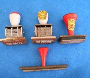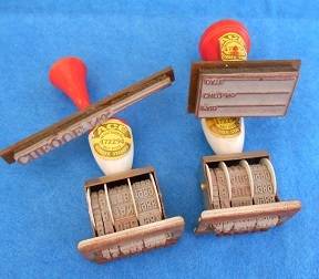 Two are revolving date stamps, two relate to paying of cheques. In good condition. Very useful for a small business.