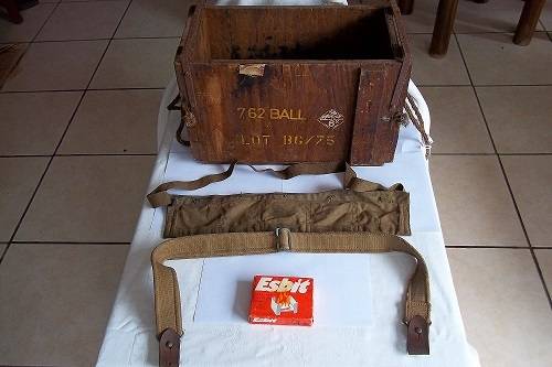 A 1970s Esbit stove. This was a favourite of SADF soldiers when cooking on patrol on the border. When folded open, it perfectly held a firebucket. The stove is in good condition for its age.
