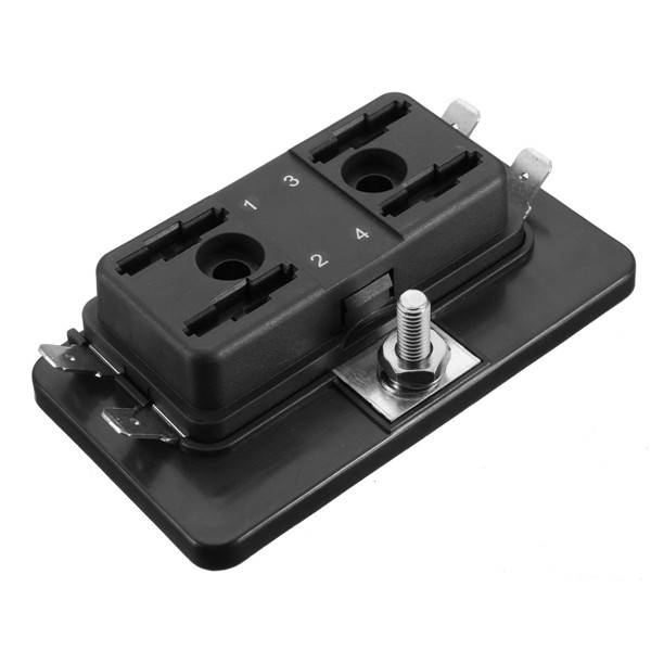 4 Way Side Terminal Bussed Power Blade Fuse Box Block Holder with Cover for Car