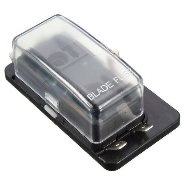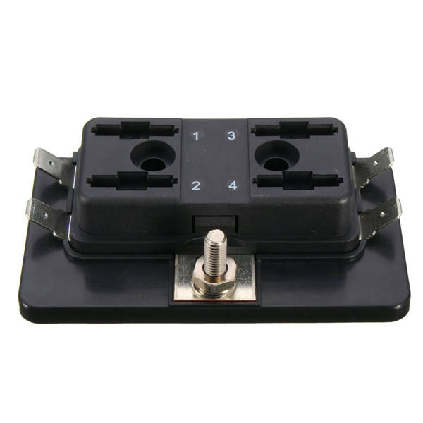4 Way Side Terminal Bussed Power Blade Fuse Box Block Holder with Cover for Car Feature: 1.4 way fuse box. 2.Each fuse holder is numbered to make fuse installation and identification as easy as possible. 3.Transparent plastic cover with push latch system, easy to operate, splash and dust-proof design. 4.Made by professional manufacturer, durable construction, quality assurance. Specification: Material:Plastic and Metal Accepting fuse: Standard blade fuse (ATO / ATC) Quantity of circuits / fuse slots: 4 Without Fuse Package included: 1 x 4 Way Blade Fuse Box Holder