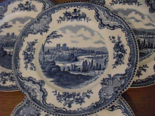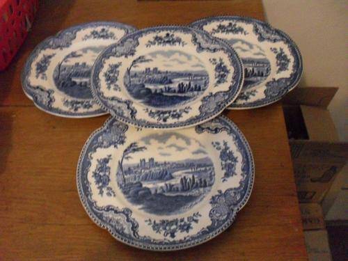 4 X BEAUTIFUL BLUE & WHITE SIDE PLATES...OLD BRITAIN CASTLE SERIES...