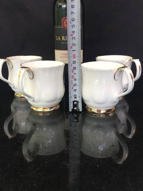 4 x Classic Gold & White Val'd'Or Royal Albert Bone China England, Coffee Cups.