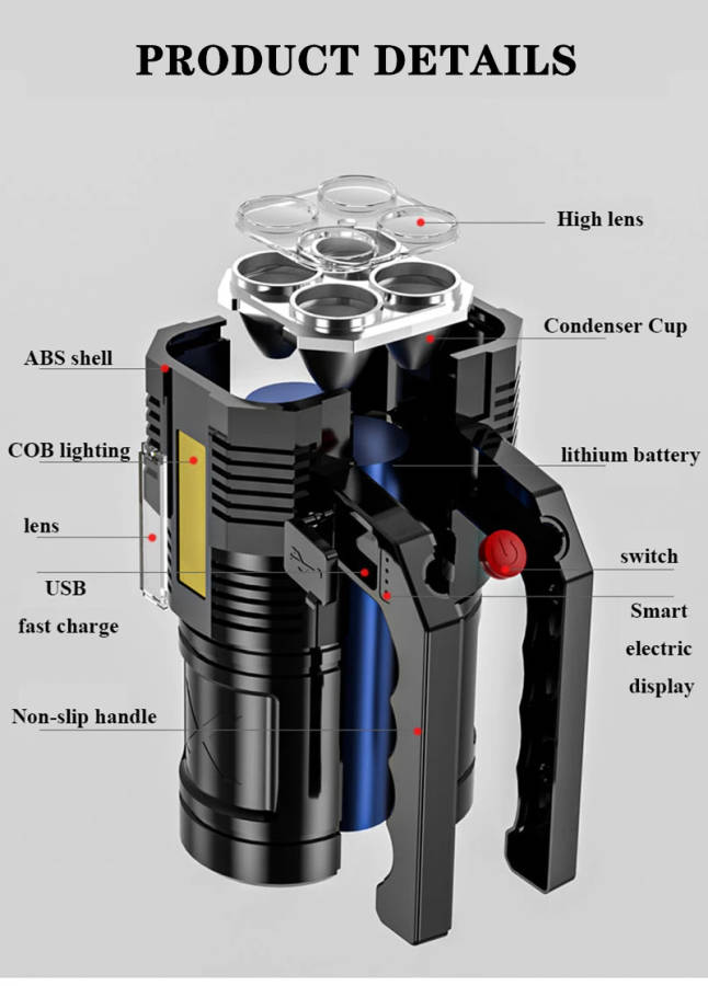 - 4 operating modes (super -hiding, accurate, flicker, side panel COB LED as a nightlight)
