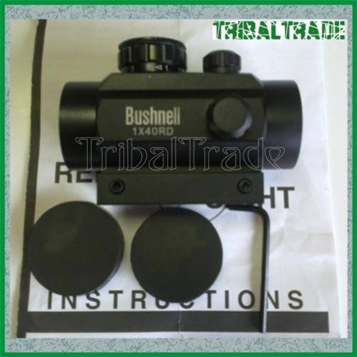 BUSHNELL 1X40EG RED DOT SIGHT SCOPE. ^ View: 19m @ 100m. ^ Illuminated Red and Green Dot. ^ Objective Diameter: 36mm. Weight: 180gr. Length: 95mm. ^ Scope Covers, and Instruction Manual included. *** Images of actual items on sale, photographed personally.*** * There are 4 scopes available on this auction. Your bid is per scope. * |