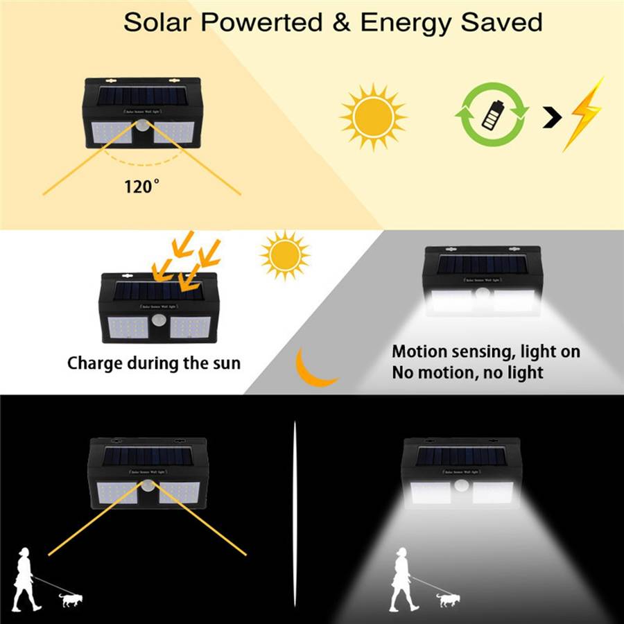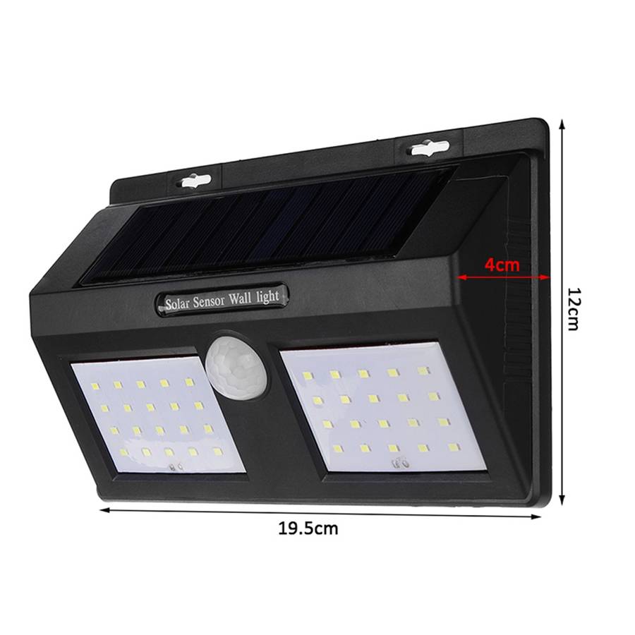 Features: 1)Waterproof and heatproof outdoor lights: IP65 waterproof ,can be used in garden,yard, pool, deck, outside wall. 2)High-efficiency & eco-friendly wall Lights: The solar light converts solar power into electric energy to flood light outdoor place . 3)Supper bright LED solar lights: 40 bright LEDs is bright enough to offer excellent illumination and great detector for security. Specifications: Material:ABS+PC Solar panel: 5.5W/6V Light Color:White Battery: 3.7V 1200mAh Switch: Human body introduction LED quantity: 2835SMD 40 LEDS Light color: white Waterproof range: IP65 Package Include: 1 X Solar Light Power Motion Sensor 2 X Screws