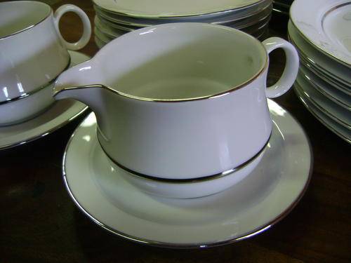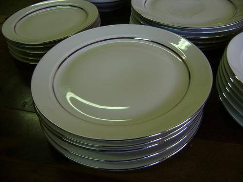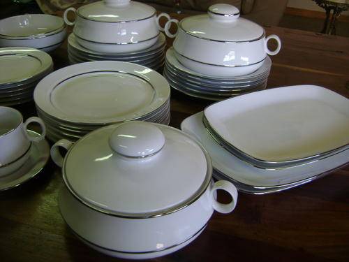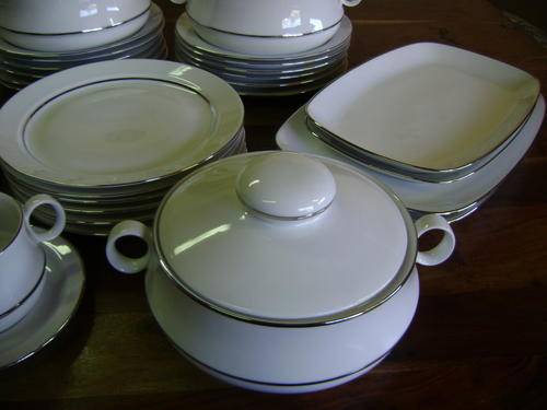 STUNNING SET - WHITE PORCELAIN WITH SILVER COLOURED STRIPE