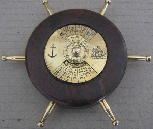 40 year calander, brass and wood. 11cm. Postage R35.00 SA post office