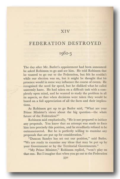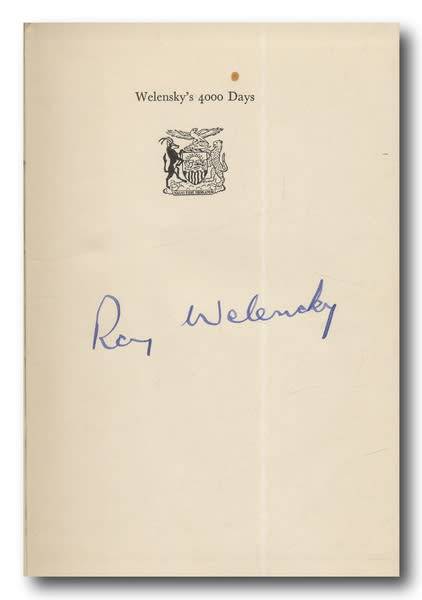 400 Days - The Life and Death of the Federation of Rhodesia and Nyasaland by Sir Roy Welensky (1st ed 1964) Signed Large A5, Hard cover, 383 pages. Cover slightly worn. Book in good overall condition.