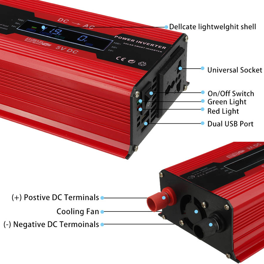 4000W Peak Power Inverter Intelligent Color Screen Dual USB Port Inverter 300W 4000W Peak Power Inverter Intelligent Color Screen Dual USB Port Inverter 300W