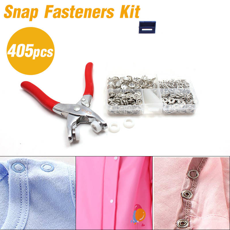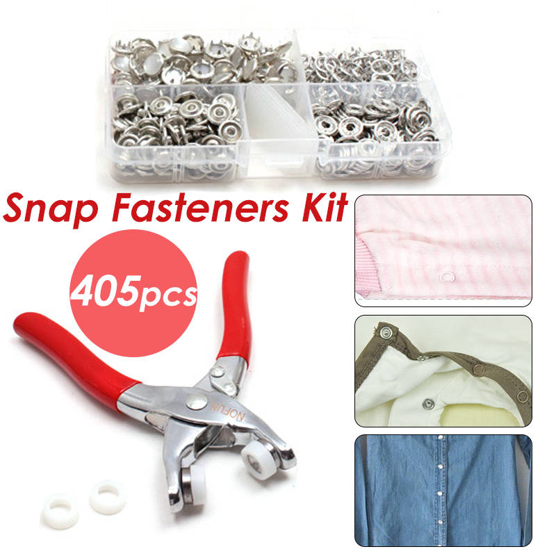 405PCS Snap Fasteners Kit Snap Press Stud Cap Buttons Rings w/Fastener Pliers 405PCS Snap Fasteners Kit Snap Press Stud Cap Buttons Rings w/Fastener Pliers
