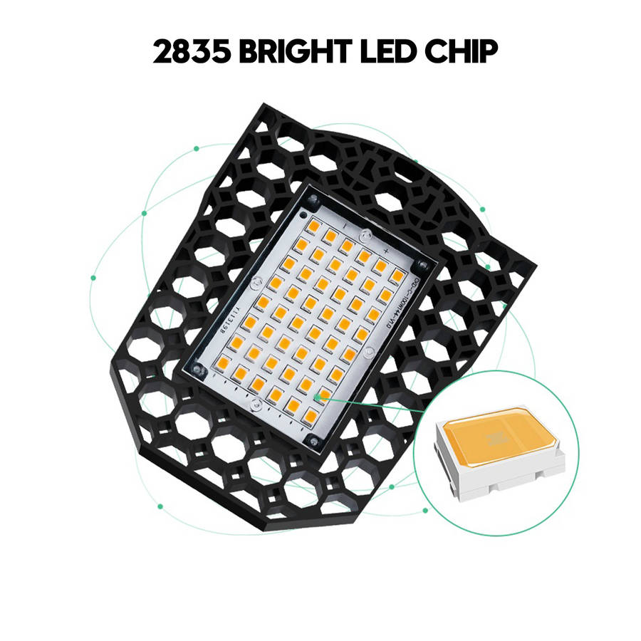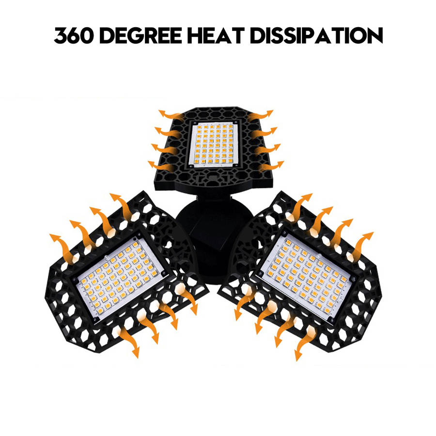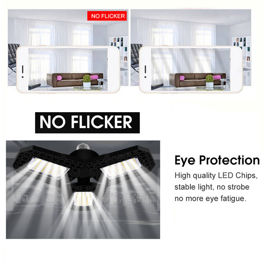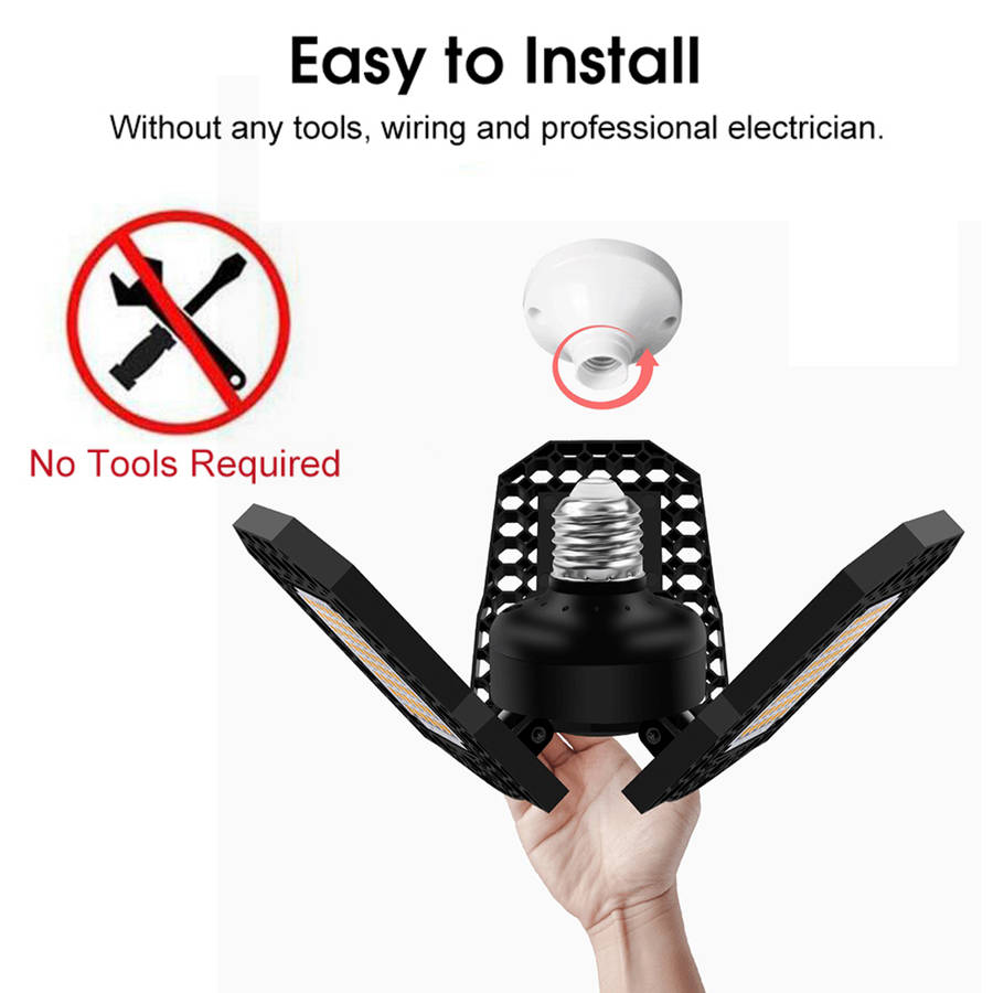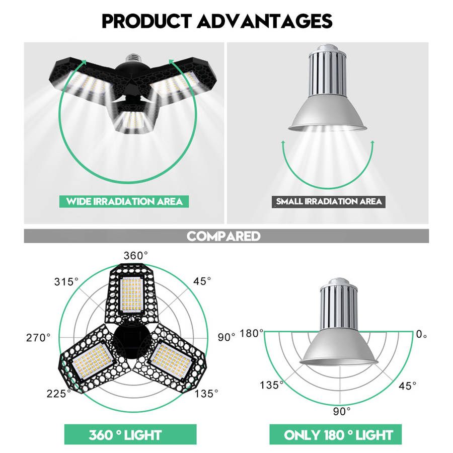 Features: Easy to Install: E27 lamp holder, and it is easily install; without any tools, wiring and professional electrician. Premium Material: It adopts high-transmission PC lampshade, which is light in brightness, soft in light, stable and durable. Adjustable illumination Angle: Each illumination unit could be adjusted by 90 degrees so that the illumination angle and area can be adjusted at your request. This allows more effective light to reach your working area, and thus the high illumination efficiency of LED bulbs can be achieved. Energy Saving & Long Service Life: With high-quality 2835LEDs,energy efficient. The color rendering index is higher than 80, which restores the true color of the object; low light decay and long service life. Wide Application: Used as garage LED light, low/high ceiling lights, LED work lights or LED bulbs. A great alternative to traditional fluorescent lamps for garages, basements, shops, workshops, public facilities, recreation rooms, warehouses, barns, equipment rooms and other industrial work spaces with large area illumination.