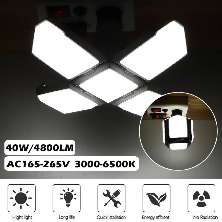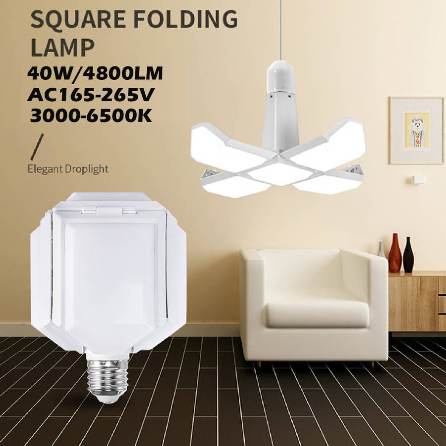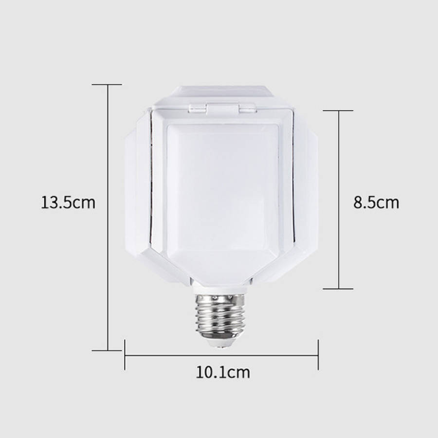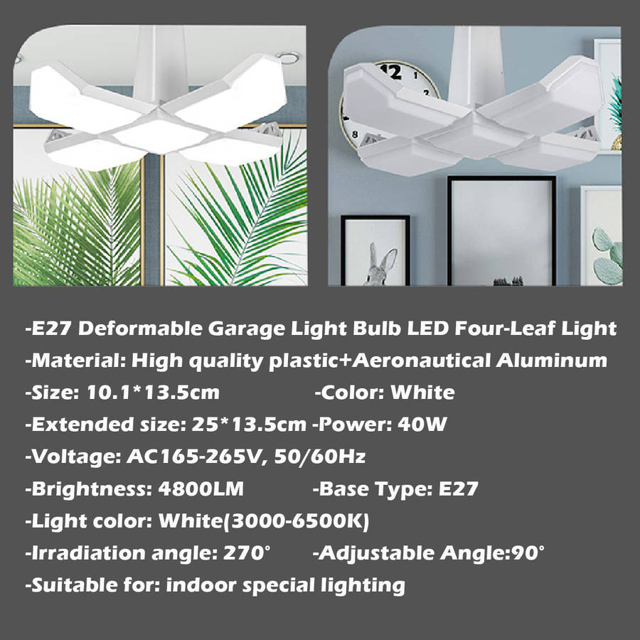 Specification: Base Type: E27 Voltage: AC165-265V, 50/60Hz Power: 40W Brightness: 4800LM Light color: White(6500K) Irradiation angle: 270ᆪ Adjustable Angle:90ᆪ Material: High quality plastic+Aeronautical Aluminum Size: 10.1*13.5cm Extended size: 25*13.5cm Suitable for: indoor special lighting