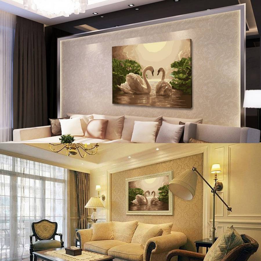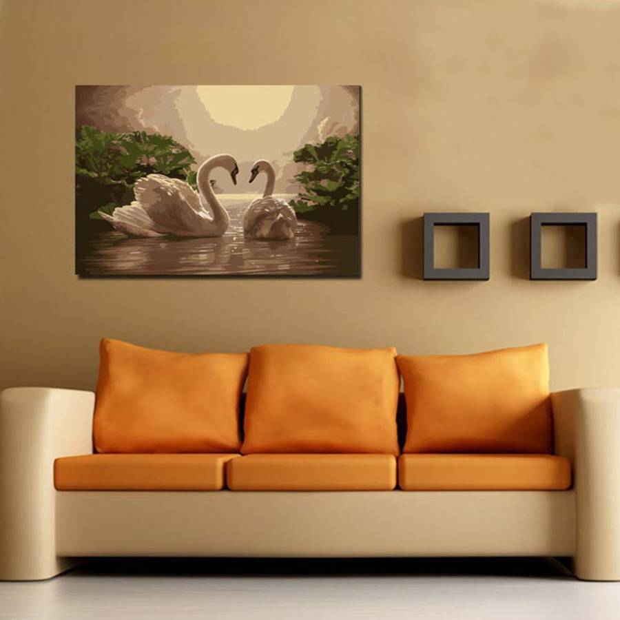 Description:40X50CM Two Beauty Swans Painting DIY Self Handcrafted Paint Kit Unframed Home Decoration Features: